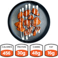 Made with tender chicken breast baked in a lightly seasoned coating, these nuggets are tossed in zesty buffalo sauce and finished with a drizzle of fat-free ranchero. With 30g of protein, moderate carbs, and relatively low fat, this high-protein meal brings the spicy, tangy satisfaction you love – minus the deep fryer.